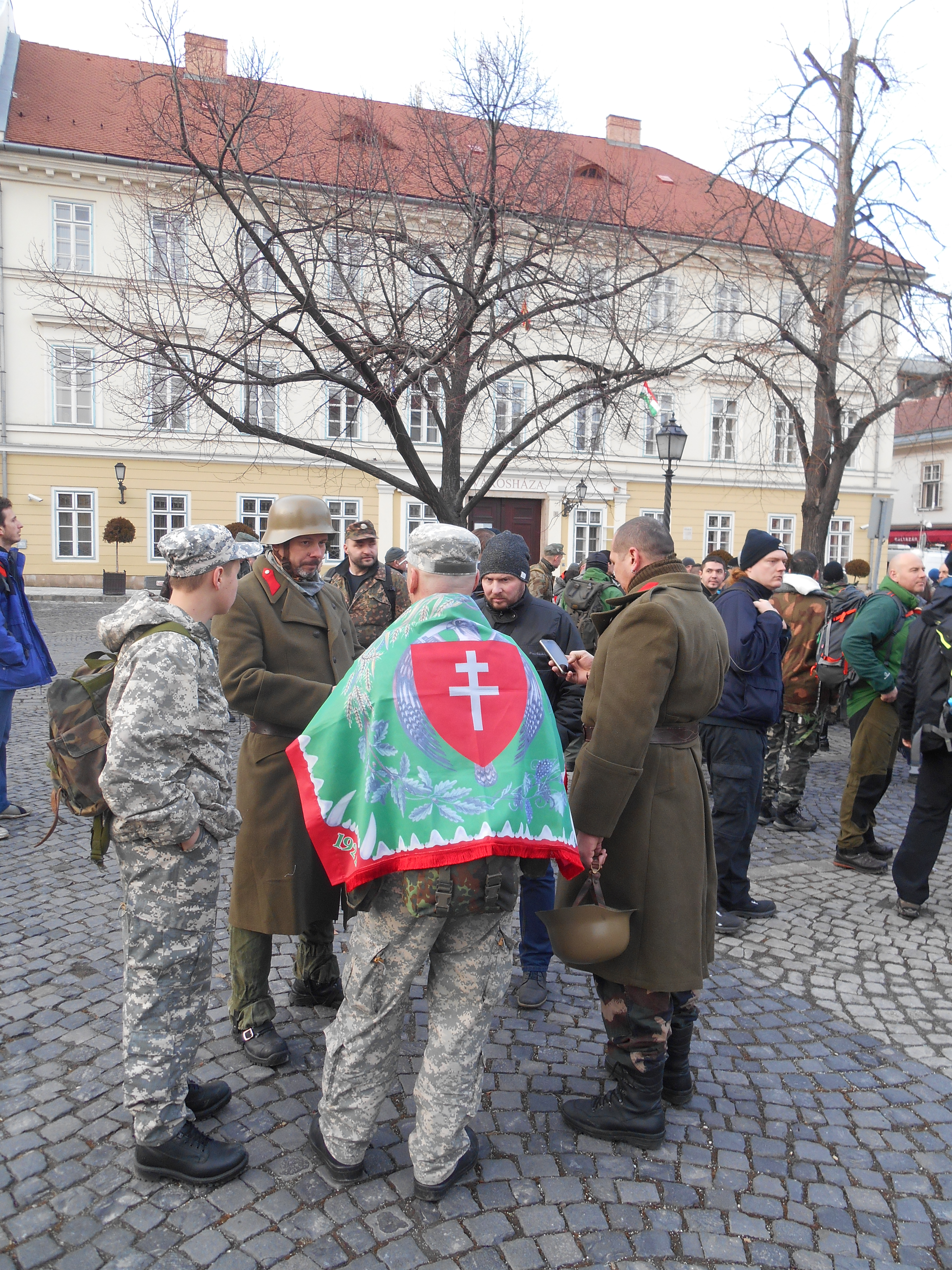 Túl vagyunk ezen a rendezvényen is. A kivonulás rendben lezajlott, mondhatni az évek során a tradíció megteremtődött. Az emberek arra vártak, hogy meginduljunk. Özönlöttek velünk, utánunk ki a Bécsi kapun. Többen meg is köszönték. A plusz, amivel ez az év több volt, hogy a Farkasok velünk együtt indultak. Beálltak mögénk és velünk együtt énekelték a menetdalt. Remélem ez is hagyományteremtő lett, sőt a jövőben több szervezet is részt vesz a közös kivonuláson. Istenem, hogy mennyire felemelő volt itt lenni.